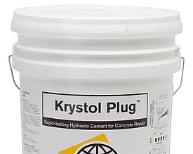 For concrete repair with flowing water, Krystol Plug is first used. As part of the Krystol Leak Repair System, Krystol Plug is a rapid-setting hydraulic cement product that when mixed with water is used to stop flowing water and repair leaking cracks, holes and joints in concrete.